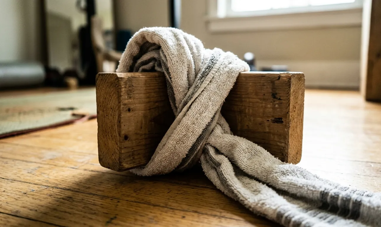 Per cominciare, si prende un asciugamano strettamente attorcigliato o una cintura di stoffa rigida.