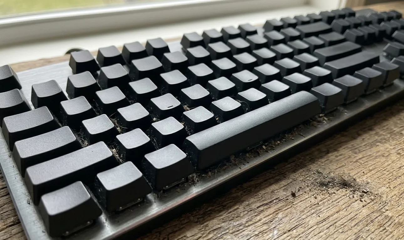 In un esperimento personale con una tastiera meccanica fallita, ho scoperto un triste quadro. Con l’uso costante di stracci per la casa, la sporcizia esterna viene semplicemente premuta sotto il meccanismo. copritastiera.