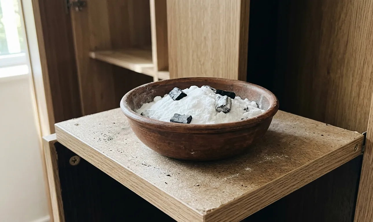 Collocare piattini di bicarbonato di sodio negli angoli della stanza e all’interno degli armadi.