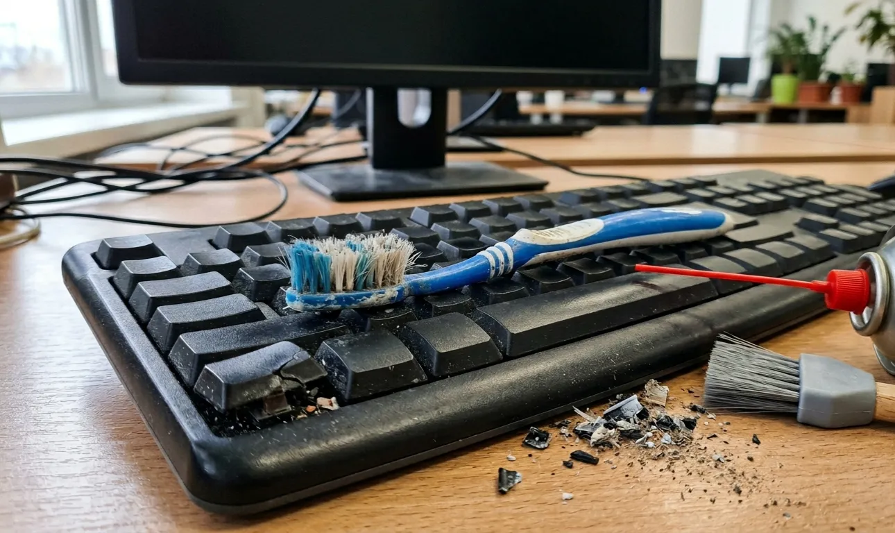 Quando ho iniziato ad auto-manutenere una postazione di lavoro, mi è sembrato molto logico pulire le briciole da sotto i tasti con una vecchia spazzola. Le setole sono rigide, penetrano in profondità e, soprattutto, lo strumento è sempre a portata di mano. Tuttavia, la pratica ha dimostrato che le briciole invisibili all’occhio residui di dentifricio e l’umidità microscopica fanno il loro danno. Il dentifricio essiccato contiene abrasivi fini che graffiano impercettibilmente il dentifricio. tracce di contattoe una lanugine troppo rigida può facilmente strappare componenti in miniatura sulle schede elettroniche.